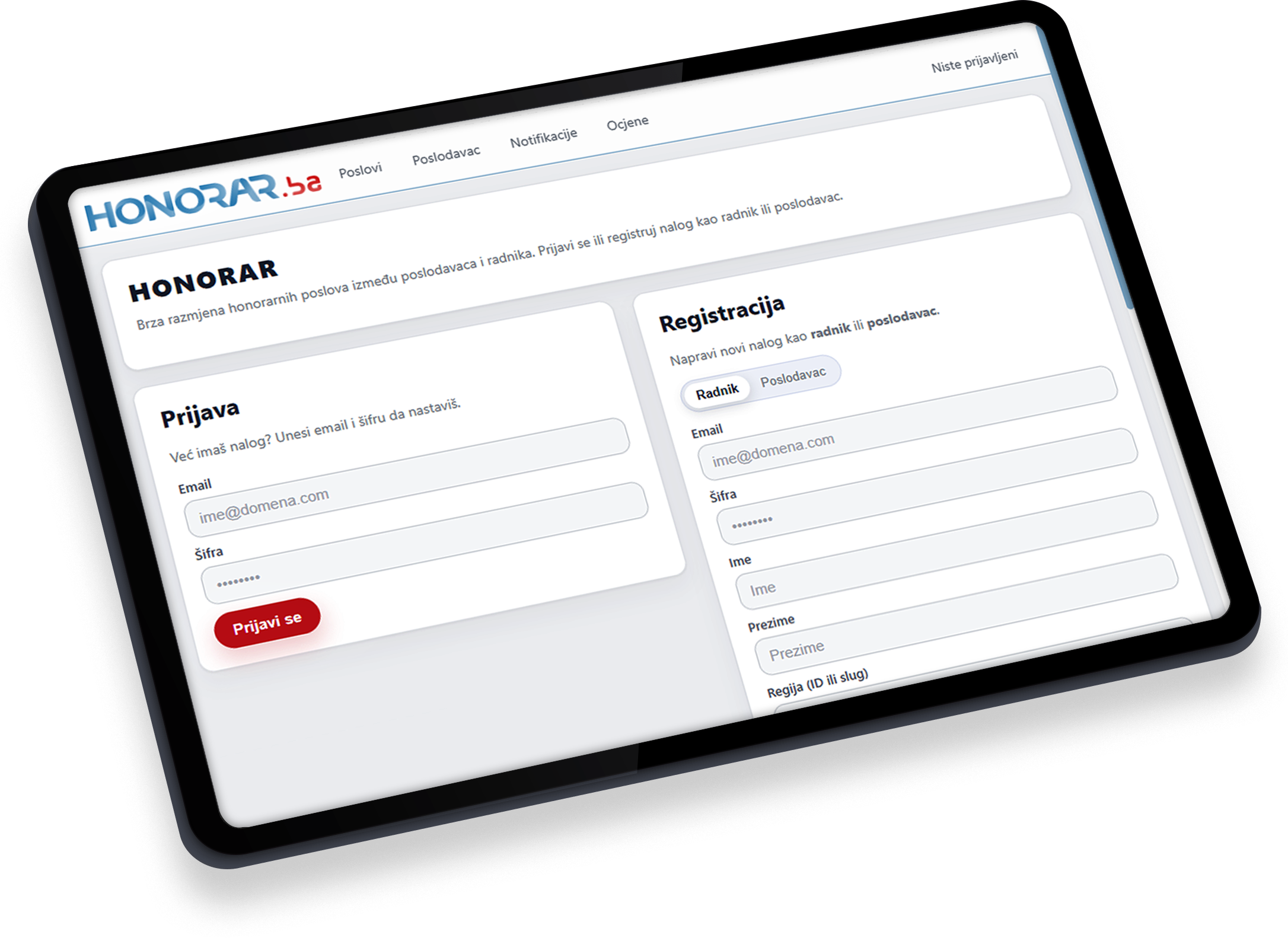 Prijavi se za rani pristup i budi među prvima koji će isprobati HONORAR.BA platformu čim postane dostupna.